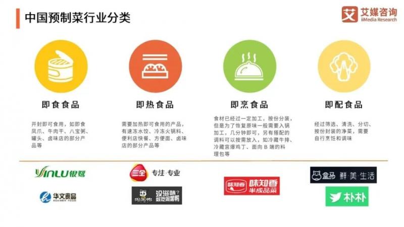 中國預制菜行業(yè)分類:現(xiàn)階段,市場上的預制菜大致可以分為即食食品、即熱食品、即烹食品和即配食品。