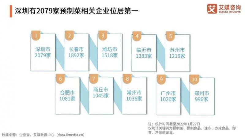 從城市來看,深圳共有2079家預制菜相關企業(yè),位居全國第一,其次是長春市,1892家;濰坊市1518家,臨沂市1381家;蘇州市1219家;其余分別是合肥市、商丘市、常州市、廣州市和鄭州市。