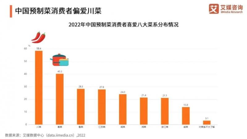在眾多預制菜類目中,即烹類預制菜最受中國消費者的歡迎;中國消費者更偏好保質期較短的預制菜產(chǎn)品;此外,八大菜系中,川菜類預制菜更受消費者的喜愛,大概占據(jù)所有菜系的58.4%。