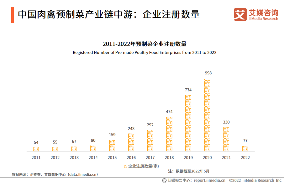 中國肉禽預制菜產業鏈中游:企業注冊數量