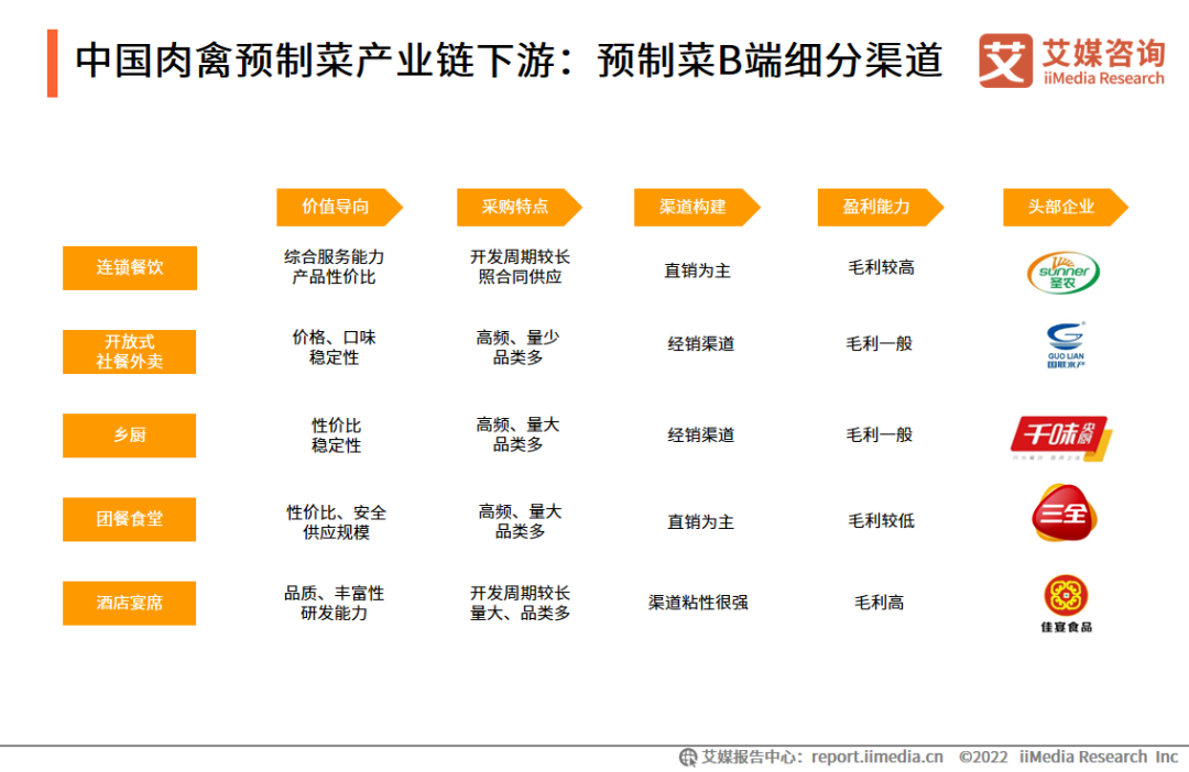 中國肉禽預制菜產業鏈下游:預制菜B端細分渠道