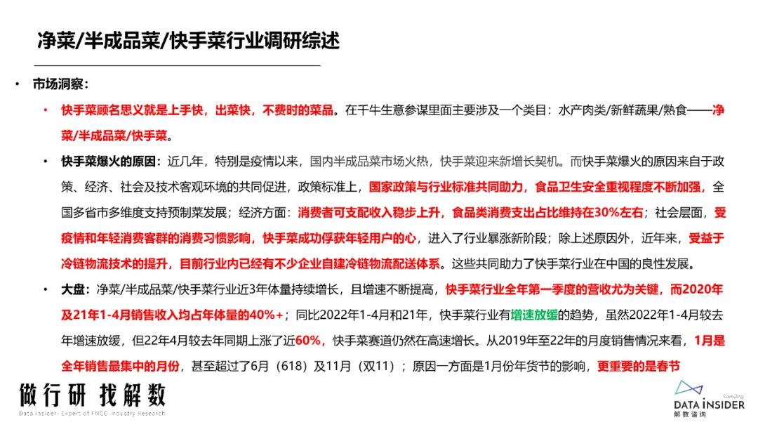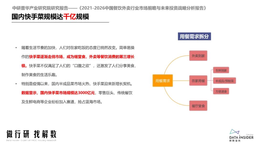 快手菜顧名思義就是上手快,出菜快,不費時的菜品,也可以稱為預制菜。近幾年,特別是疫情以來,國內半成品菜市場火熱,快手菜迎來新增長契機。本期小編為大家整理了來自解數咨詢的"快手菜行業調研",供大家分享學習。