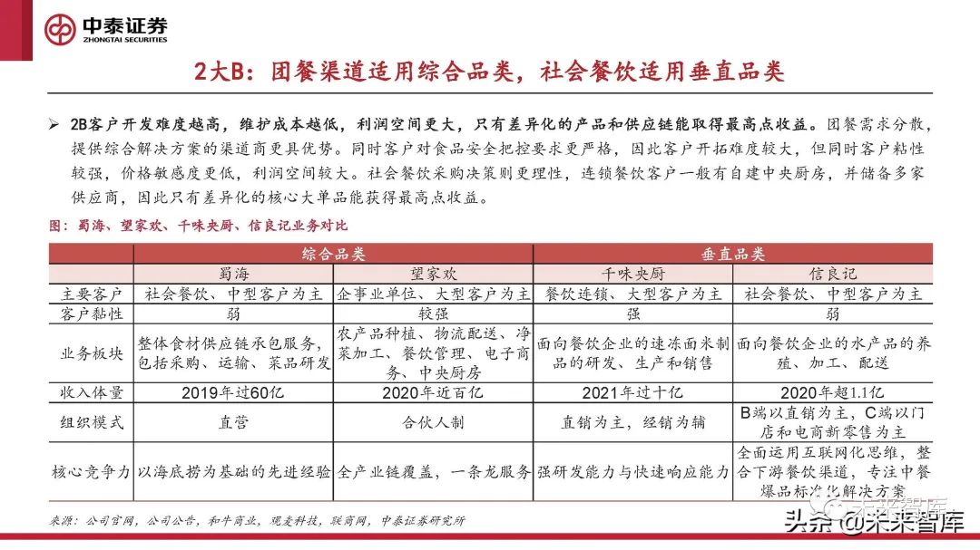 2大B:團(tuán)餐渠道適用綜合品類,社會(huì)餐飲適用垂直品類