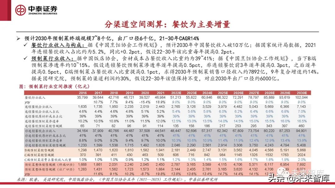 預(yù)計(jì)2030年預(yù)制菜終端規(guī)模7~8千億,出廠口徑6千億,21-30年CAGR14%
