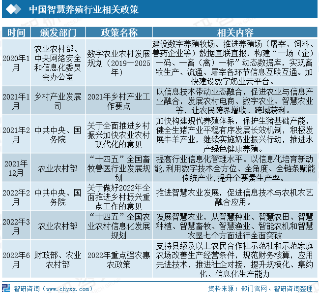 相關報告:智研咨詢發布的《2022-2028年中國智慧養殖行業市場調查研究及發展前景展望報告》