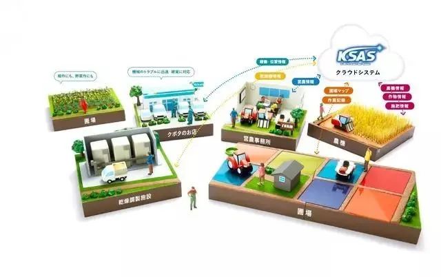 通過手機以及電腦,可以對農場管理、肥料情況、收割作業計劃、作業記錄以及現在進展狀況等方面進行實時的確認。也可以與農業機械聯動,實時提供機械的“診斷報告”,可以隨時確認農機工作是否正常,還可定位農機的位置。簡單來說,這個系統是“集合”的存在,通過云端對各個方面進行監控。