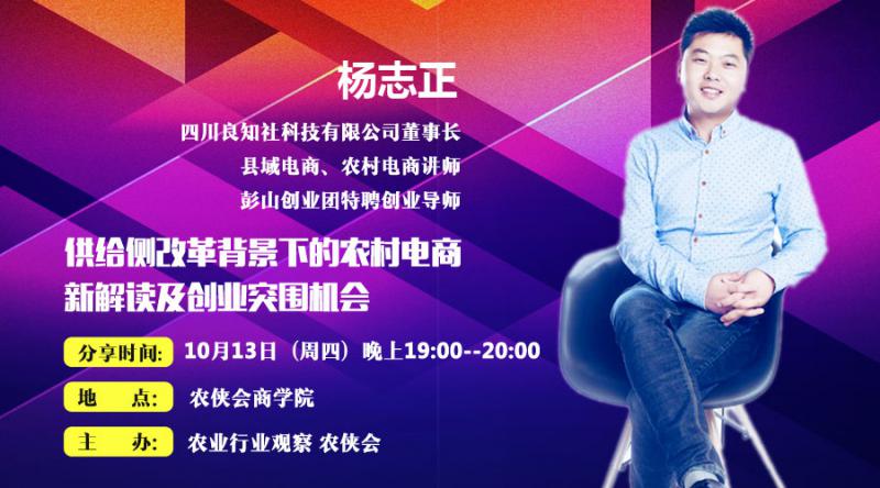 2016年10月13日(周四)19:00-20:00農(nóng)業(yè)行業(yè)觀察旗下社群農(nóng)俠會(huì)邀請(qǐng)了縣域電商、農(nóng)村電商培訓(xùn)師楊志正在線分享實(shí)戰(zhàn)課程。