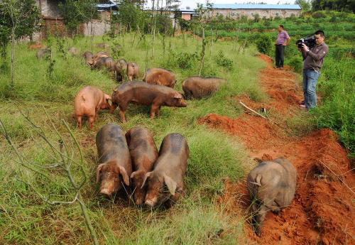 養(yǎng)豬一般都是圈在欄里養(yǎng)的,一天他發(fā)現(xiàn)一個(gè)農(nóng)戶把豬和牛羊一樣,一起放養(yǎng)。長大以后,肉非常非常的好吃,覺得這個(gè)可以嘗試,所以他就把這個(gè)豬放到山上去,他稱之為“跑豬”。
