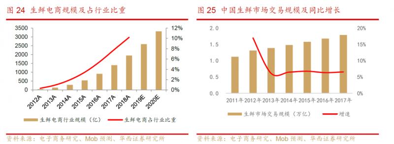 再從產品的銷售角度來分析,華西證券認為,近年來我國生鮮消費穩定增長,基本與城鎮居民消費呈同步增長趨勢目前在我國生鮮消費的渠道仍然以農貿市場為主,相較于國外,我國生鮮超市未來有較大提升空間。