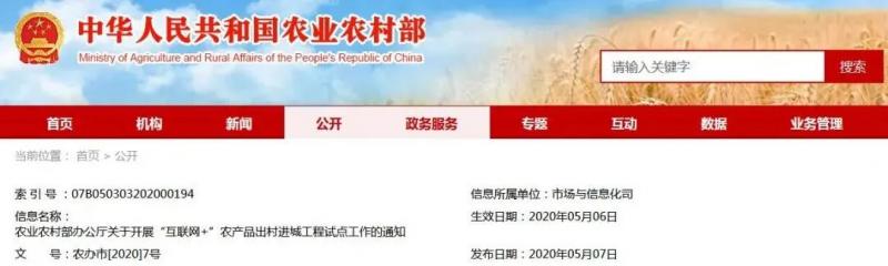 【政策】農業農村部:“互聯網+”農產品出村進城試點100個縣