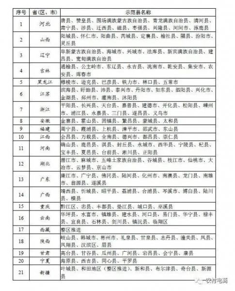 2020年電子商務(wù)進(jìn)農(nóng)村綜合示范縣名單(第一批)