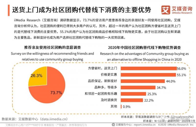 疫情嚴重影響了人們的日常生活,而社區(qū)團購模式幫助人們解決了日常的生活購物問題,刺激了社區(qū)團購的發(fā)展。社區(qū)團購銷售的都是生活必需品包括食物及日用品,能夠滿足廣大居民的需要;社區(qū)團購模式簡單,并且可以快速起量,能夠在疫情影響下快速復(fù)制到各個小區(qū);社區(qū)團購采用預(yù)售+自提的方式可以實現(xiàn)無接觸配送,發(fā)揮配送成本低的優(yōu)勢的同時可以有效避免人們之間的接觸。