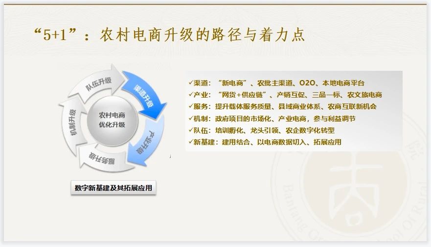 其中,“5”是渠道升級(jí)、產(chǎn)業(yè)升級(jí)、服務(wù)升級(jí)、機(jī)制升級(jí)和隊(duì)伍升級(jí),“1”是農(nóng)村數(shù)字新基建及其拓展應(yīng)用。