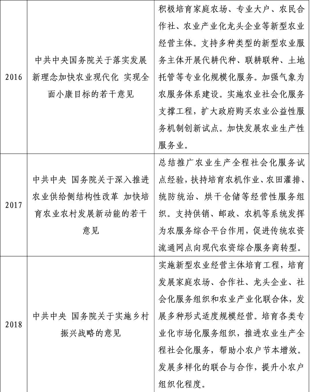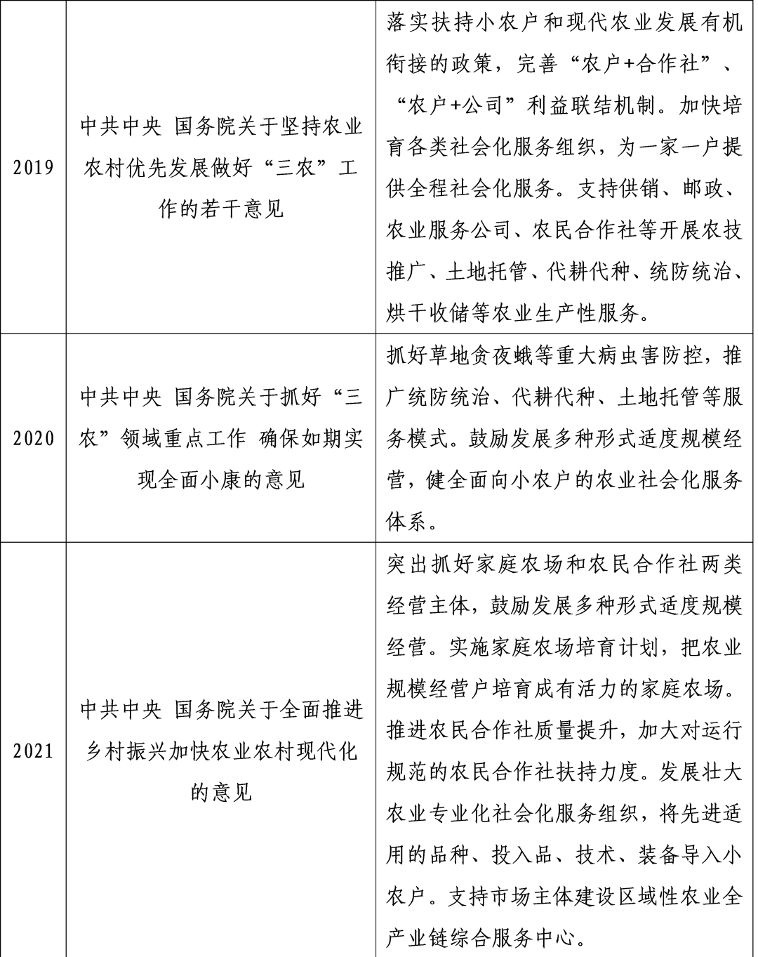 黨的十八大以來(lái),我國(guó)農(nóng)業(yè)社會(huì)化服務(wù)不斷探索創(chuàng)新、蓬勃發(fā)展,對(duì)鞏固完善農(nóng)村基本經(jīng)營(yíng)制度、保障糧食安全和重要農(nóng)產(chǎn)品有效供給、促進(jìn)農(nóng)業(yè)穩(wěn)定發(fā)展發(fā)揮了重要的作用。黨中央國(guó)務(wù)院高度重視農(nóng)業(yè)社會(huì)化服務(wù)的發(fā)展,2012年以來(lái)歷年的中央一號(hào)文件均強(qiáng)調(diào)要提升農(nóng)業(yè)社會(huì)化服務(wù)水平,加快各類社會(huì)化服務(wù)組織培育,為農(nóng)業(yè)經(jīng)營(yíng)主體提供種類多樣的社會(huì)化服務(wù),構(gòu)建面向小農(nóng)戶的農(nóng)業(yè)社會(huì)化服務(wù)體系,實(shí)現(xiàn)小農(nóng)戶與現(xiàn)代農(nóng)業(yè)發(fā)展有機(jī)銜接。