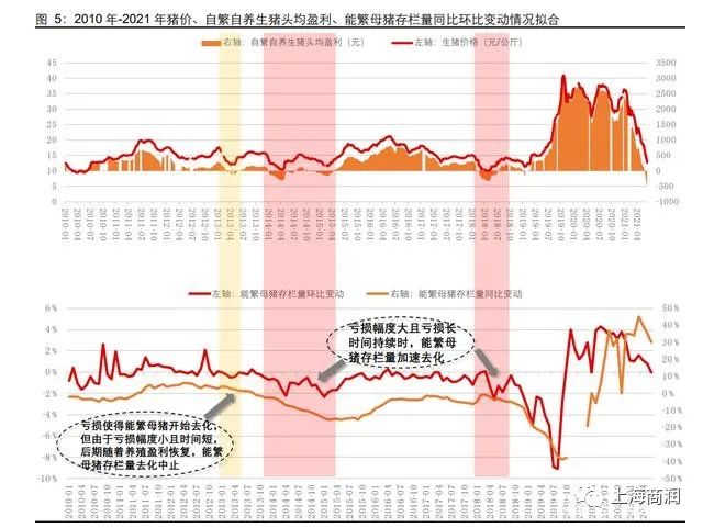 2021年下半年-2022年一季度生豬養豬預計較長時間處于虧損狀態,春節前消費旺季短暫的盈利恢復窗口預計不足以支撐養殖主體的現金流量表顯著改善,基于此,我們預計,本輪豬周期的能繁母豬存欄量預計在2021年下半年-2022年上半年持續去化,樂觀情況下,2022年下半年豬價或將迎來下一輪豬周期拐點,悲觀預期下,我們認為大概率2023年上半年也將看到豬價拐點。