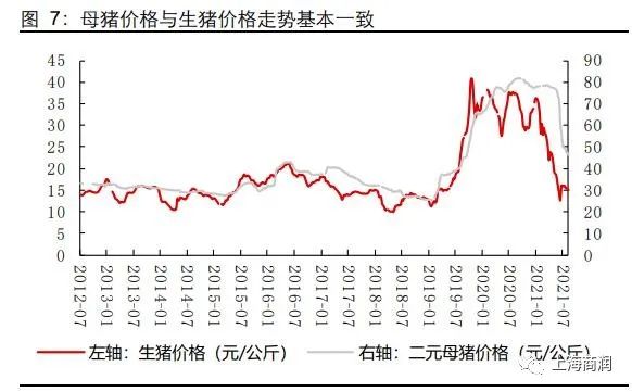 由于中國生豬養殖行業規模化程度仍低,中小養殖戶是主要力量,因而中小養殖戶的產能調整節奏主導著行業整體能繁母豬產能的變化節奏。由于對未來的豬價判斷難度較大,中小養殖戶一般是以當前的豬價以及養殖盈利作為標準進行線性外推,當前豬價下跌時會預期未來豬價也下跌,這正是仔豬、母豬價格基本與生豬價格同漲同跌的原因,從而當行業持續深度虧損時,養殖戶預期未來可能也會虧損,從而加快母豬淘汰進度。