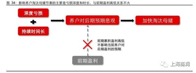 在一個典型的豬周期中,在豬價進入下行周期后,養殖盈利逐漸縮小,當豬價跌至成本線以下,養殖戶的補欄積極性顯著受挫,并開始停止補欄母豬,隨著豬價的進一步走低,養殖虧損擴大,養戶會開始淘汰母豬,先是低效母豬,當預期極度悲觀時,正常母豬的淘汰也會加速。