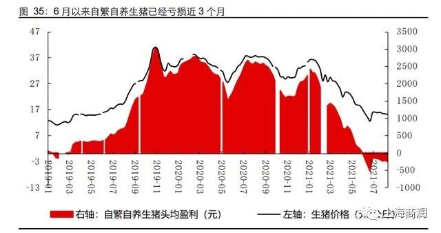 6月以來生豬養殖行業已經虧損近3個月。5月以來豬價超預期下跌,6月開始行業陷入虧損,6-8月22個省市生豬均價分別為14.88、15.96和15.06元/公斤,均在成本線以下,自繁自養生豬6-8月頭均分別虧損275元、175元和291元,外購仔豬育肥豬虧損幅度更大,6-8月外購仔豬育肥豬頭均分別虧損1360元、1255元和1253元。