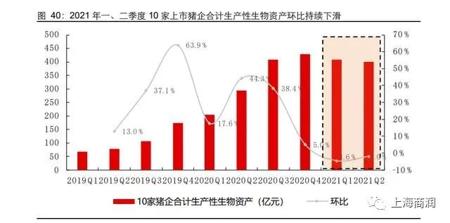 本輪豬周期中,由于規模企業成本顯著高于散養戶,因而更早開始虧損且頭均虧損深度預計更大,并且很多大型規模企業在過去兩年擴張較快、杠桿率較高,因而較早遇到資金壓力,因而產能去化速度或比中小養殖戶更快。本輪豬周期,行業普遍虧損是從6月開始的,但成本高的大型規模企業,實際上一季度已經開始虧損,二季度虧損幅度更大。過高的虧損使得本輪周期大型企業產能去化速度或更快,以10家4上市豬企為例,其合計生產性生物資產在2021年一季度即開始環比下滑,二季度環比繼續下滑,頭部豬企中牧原股份、新希望和正邦科技二季度生產性生物資產環比繼續下滑,溫氏環比持平,而農業農村部監測的全國能繁母豬存欄量在7月份才首次月環比下降。即在本輪豬周期中,以頭部上市豬企為代表的大型養殖企業的母豬產能去化時間甚至早于行業平均水平。在大型豬企開始去產能的時間大概率比以往豬周期更早的背景下,本輪豬周期母豬產能去化速度或更快。