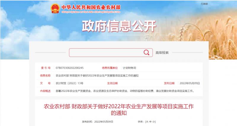 農業農村部、財政部日前印發《關于做好2022年農業生產發展等項目實施工作的通知》。