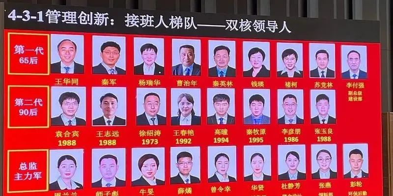我們第三個大的創新就是管理創新,就是接班人梯隊。我們第一代領導人,那是以我為代表六五后。我們第二代已經作為核心已經是上來了。他們形成一個常委會。這個領導班子已經適應了一年了。也就是說到現在為止,我就專心致力于技術研發這些工作。那么這個雙核領導制領導人也是和我們的董事查蘭老師長期討論的結果。