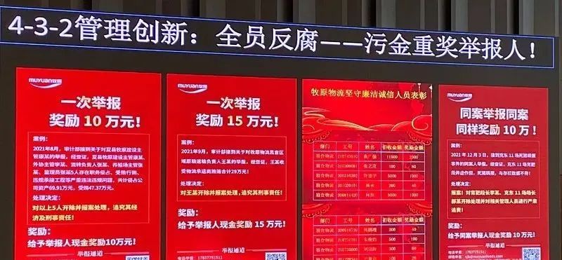 我們這個全員反腐。這個管理創新我們說是要把污金重獎舉報人,10萬塊錢以下全部獎勵。如果超過 10 萬的累計進升。那么這樣一來,我們就是對所有的管理都實行全員反腐,通過(這些)我們就是從廉潔誠信,違章違紀,濫用私權,用自己親屬,弄虛作假啊——豬死了不報,想要個好業績,這都舉報。管理創新要全方位。