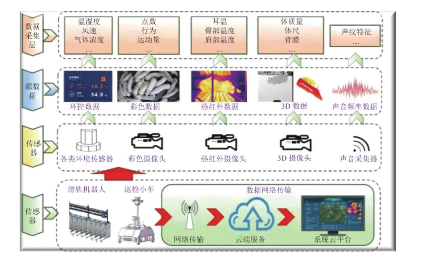 智能監控機器人系統,系統可同時檢測養殖環境及生豬生長狀態多維度信息,包括生豬姿態和聲音數據的采集。