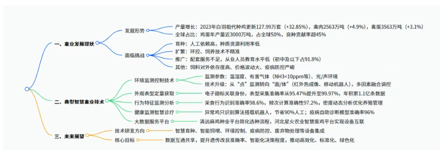 數智技術推動生產變革:智慧養殖是促進禽業高質量發的必由之路,是畜牧業的“新質生產力”。我國正處于由畜牧大國向畜牧強國轉型升級的關鍵時期,如何高效化、標準化、綠色化發展是產業變革的核心。