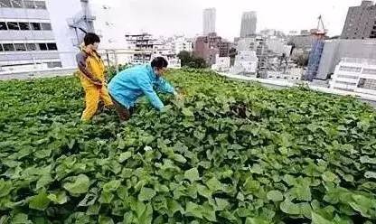 一家日本電信公司,甚至為了解決“熱島效應”,在大樓樓頂引進紅薯種植。紅薯葉大,遮陽效果好,紅薯的蒸騰作用還能充當“天然空調”。經測量,沒有種植紅薯的樓頂,比種植紅薯的樓頂,其溫度最多可高出27℃。