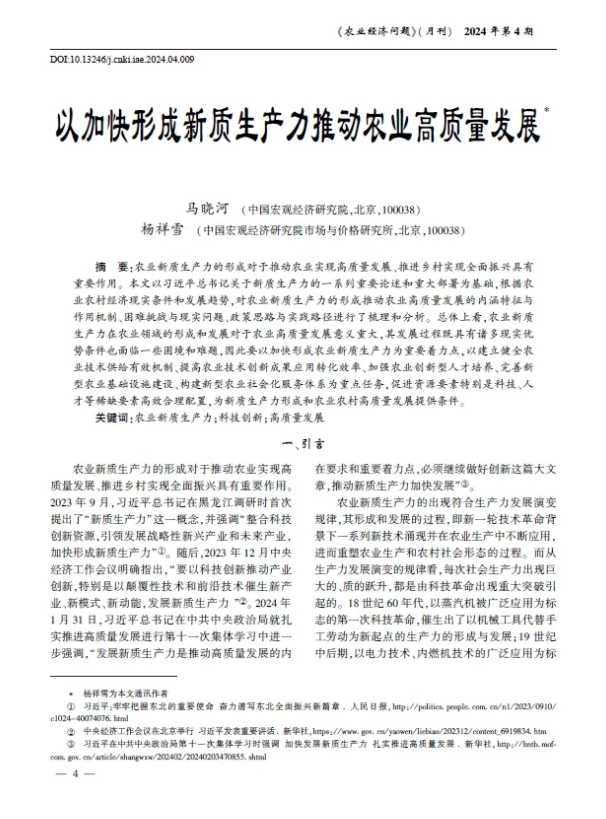 萬字雄文!馬曉河等:以加快形成新質(zhì)生產(chǎn)力推動(dòng)農(nóng)業(yè)高質(zhì)量發(fā)展