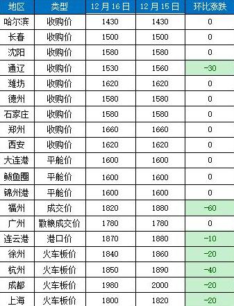咱們先看一組12月16號的玉米價格數據: