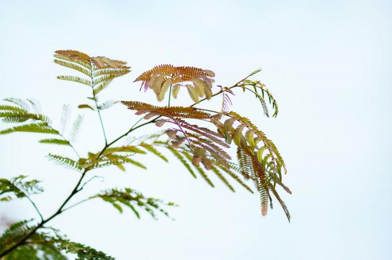 紫葉合歡新葉鮮紅至紫色,仲夏變暗紫色,入秋又變紅色,其花如火焰簇簇。是國內(nèi)目前最有前途的鄉(xiāng)土喬木樹種。