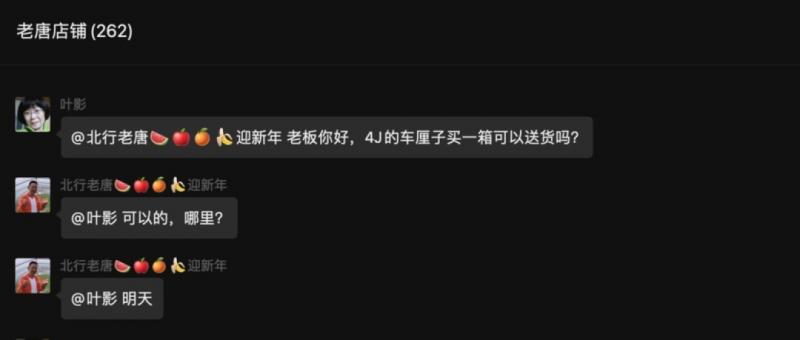 老唐為群里的客戶提供10公里范圍內的送貨上門服務,以及相對線下更優惠的水果價格。如今,只要他在群里發布一則新品,立刻就會有一批擁躉舉手訂購。