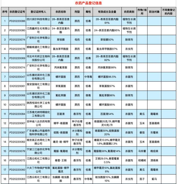 【農資行業】53家企業的72個農藥產品獲批登記(附詳細名單)