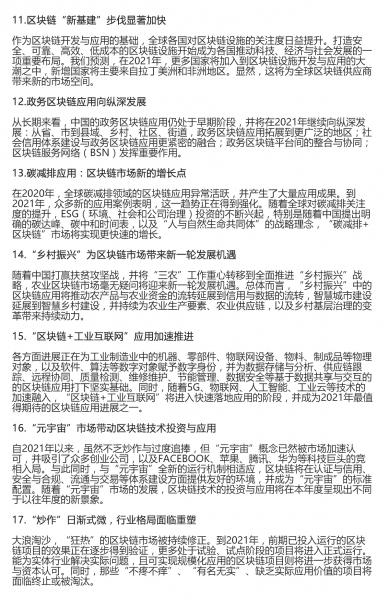 根據(jù)《邁進3.0時代:2021全球區(qū)塊鏈應(yīng)用市場報告》,區(qū)塊鏈技術(shù)正加速融入到金融、政務(wù)領(lǐng)域,以及農(nóng)業(yè)、能源、交通、醫(yī)療、制造、傳媒等更廣泛的行業(yè)之中,并產(chǎn)生了大量應(yīng)用成果。