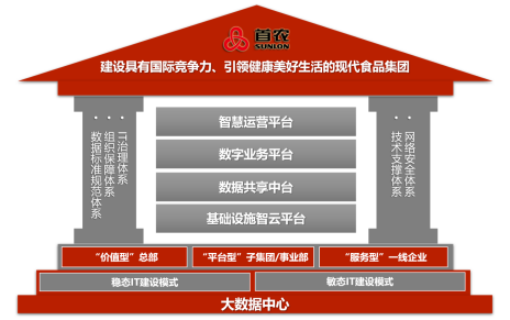 首農食品集團通過研判內外部發展環境、匹配業務需求和發展主線,制定信息化子規劃,實施以“建設一個中心、實施兩種模式、堅持三層建設、打造四大平臺、規范五個體系”為核心的“12345”信息化戰略,聚焦企業平臺化、業務在線化、運營數據化、管理智能化、互聯數字化、資源虛擬化六大發展方向。