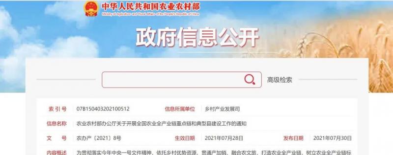 各級農業農村部門要高度重視,認真做好農業全產業鏈培育建設工作。