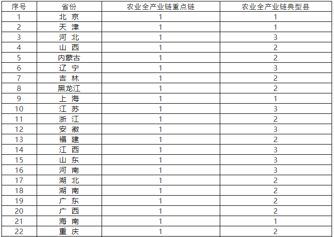 2021年全國(guó)農(nóng)業(yè)全產(chǎn)業(yè)鏈重點(diǎn)鏈和典型縣申報(bào)名額分配表