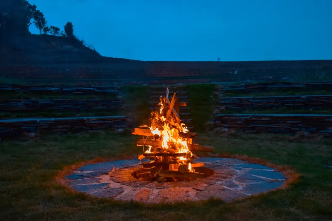 在這個(gè)三角形空地上埋鍋造飯,從一旁的菜園徑直取材,加上篝火,就是田野上的餐桌。