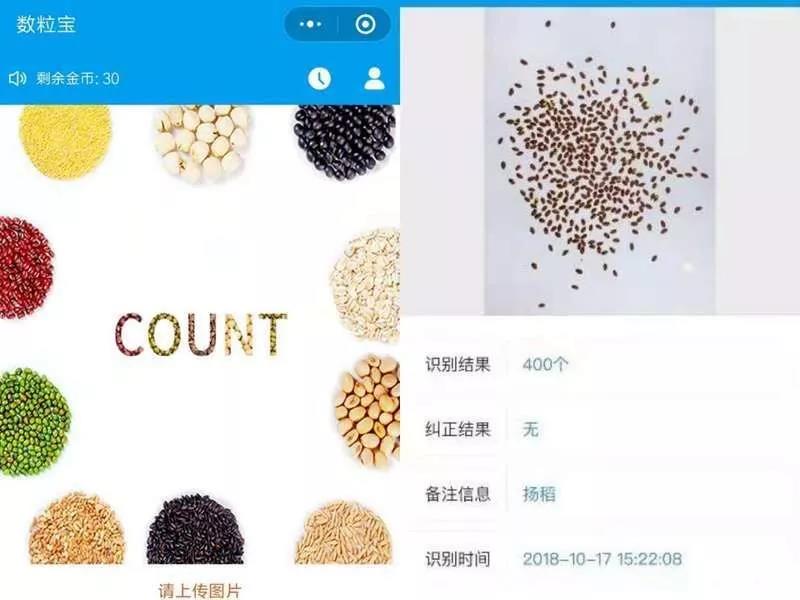 “數(shù)粒寶”,是一款由中國農業(yè)科學院農業(yè)信息研究所下屬團隊研發(fā)的微信小程序。“數(shù)粒寶”運用人工智能+圖像識別技術讓用戶僅需一部手機,通過拍照上傳即可自動識別出籽粒數(shù)量,平均4秒得出結果,準確率超過98%。計數(shù)操作簡單易上手,支持識別結果批量導出,自動生成統(tǒng)計報表發(fā)送到用戶郵箱。