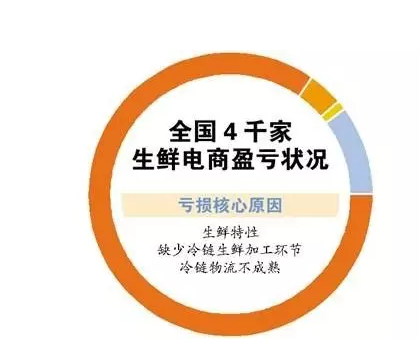 數據顯示,生鮮電商平臺只有1%盈利,4%持平,88%略虧,剩下的7%處于巨額虧損的現狀。