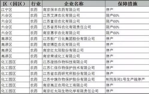 江蘇發展大會環境空氣質量保障重點管控農藥企業名單。