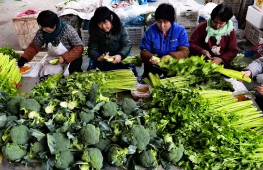 全場(chǎng)不見一片蔬菜葉,全部從冷庫(kù)出來,分堆,然后投遞到卡車。