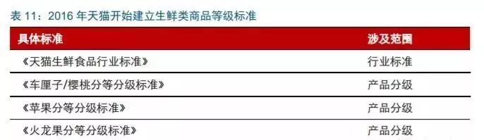 我們認為,生鮮差異化定價的方式之二是渠道端自建生鮮產品等級標準。因為定價權很大程度上取決于行業標準制定權,而當前在中國農業仍分散種植為主、尚未有統一、細致的生鮮產品分級標準之前,渠道端率先建立產品分級標準,方能為其在品質更高的生鮮上賣出溢價背書。