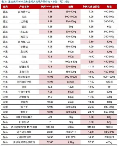 1.定位偏大眾化,這一點,從重慶永輝mini店和附近的大賣場產品價格差距不大,可以窺見一斑;