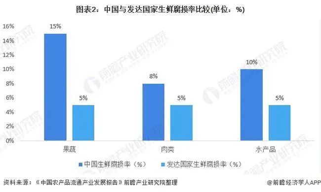 數據顯示,歐美國家生鮮產品損耗率控制在5%的穩(wěn)定水平,我國的生鮮損耗率在10%以上,是歐美國家的2-3倍,大大提高了生鮮市場的成本。