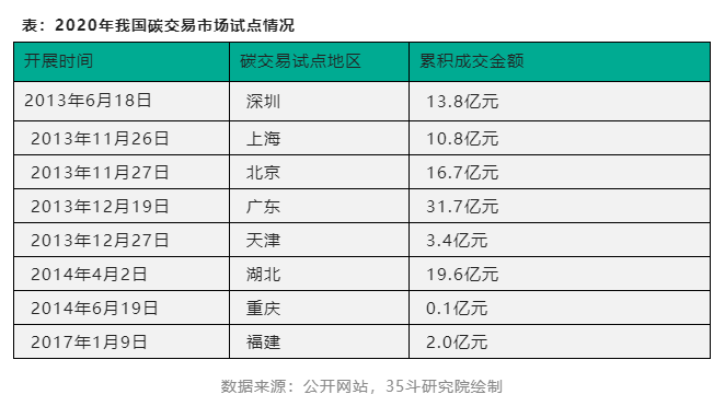 在實現(xiàn)碳達(dá)峰、碳中和的過程中,碳排放交易是不可忽視并值得重視的關(guān)鍵路徑。我國于2013年6月18日從深圳市開始試點(diǎn)碳交易市場,陸續(xù)又在上海、北京、廣東、天津、湖北、重慶、福建試點(diǎn)了八個碳交易市場。截至2020年,我國碳交易成交總額為98.1億元,其中廣東的成交額最高,達(dá)到31.7億元。
