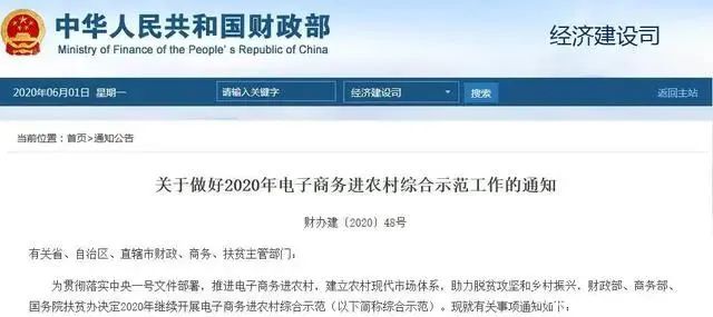 據(jù)財政部網(wǎng)站消息,近日,財政部辦公廳 商務(wù)部辦公廳 國務(wù)院扶貧辦綜合司聯(lián)合印發(fā)《關(guān)于做好2020年電子商務(wù)進(jìn)農(nóng)村綜合示范工作的通知》。鼓勵各地優(yōu)先采取以獎代補(bǔ)、貸款貼息,結(jié)合先建后補(bǔ)、購買服務(wù)、直接補(bǔ)助等支持方式,合理加快資金進(jìn)度,提高資金使用效益,通過中央財政資金引導(dǎo)帶動社會資本,共同參與農(nóng)村電子商務(wù)工作。