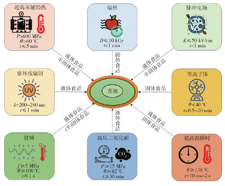 圖2 可實現芽孢殺滅的新型食品殺菌技術
