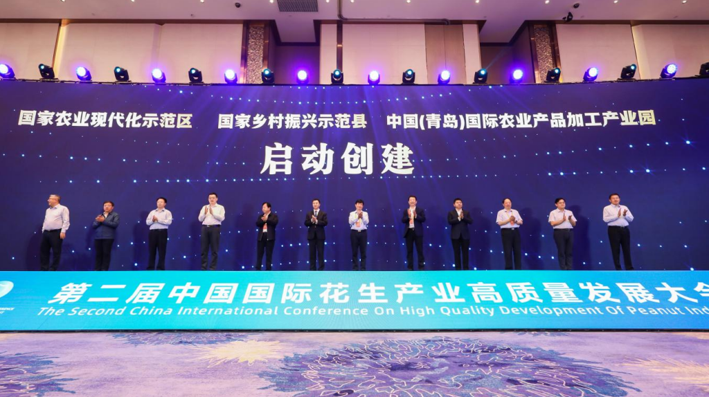 在本屆大會(huì)中,萊西花生產(chǎn)業(yè)的高質(zhì)量發(fā)展模板再度獲封全新榮譽(yù),成為國(guó)家級(jí)試點(diǎn)。來(lái)自國(guó)家、省、市各級(jí)領(lǐng)導(dǎo)在大會(huì)開幕式中一同登場(chǎng),在現(xiàn)場(chǎng)舉行了國(guó)家鄉(xiāng)村振興示范縣、國(guó)家農(nóng)業(yè)現(xiàn)代化示范區(qū)、中國(guó)(青島)國(guó)際農(nóng)產(chǎn)品加工產(chǎn)業(yè)園(籌)創(chuàng)建啟動(dòng)儀式。